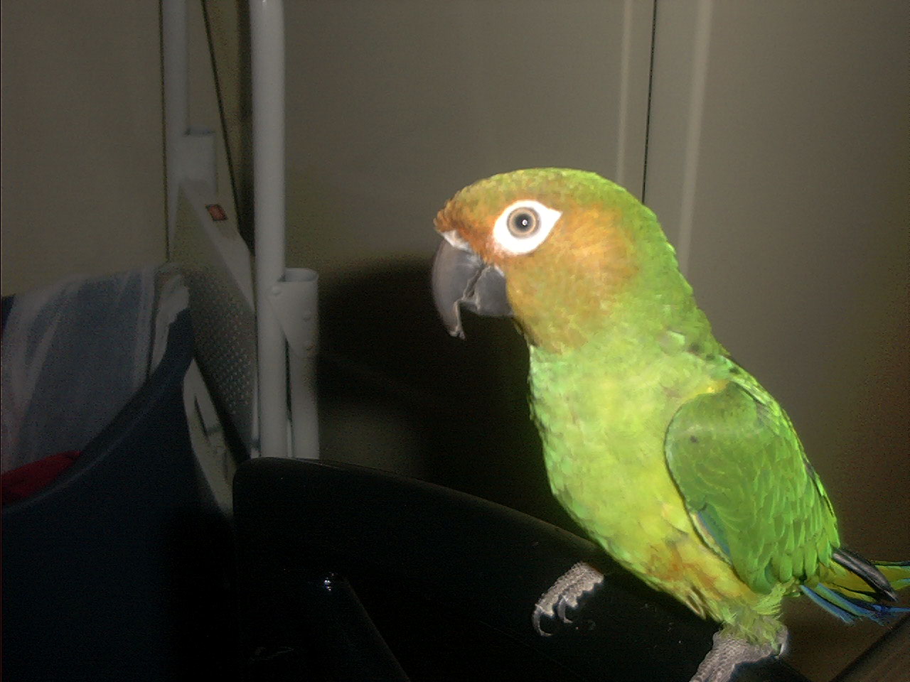 this is my bird he looks really cool but he is really fucking anonying he flies around and makes to much noise when im trying to sleep i think he does it on purpose