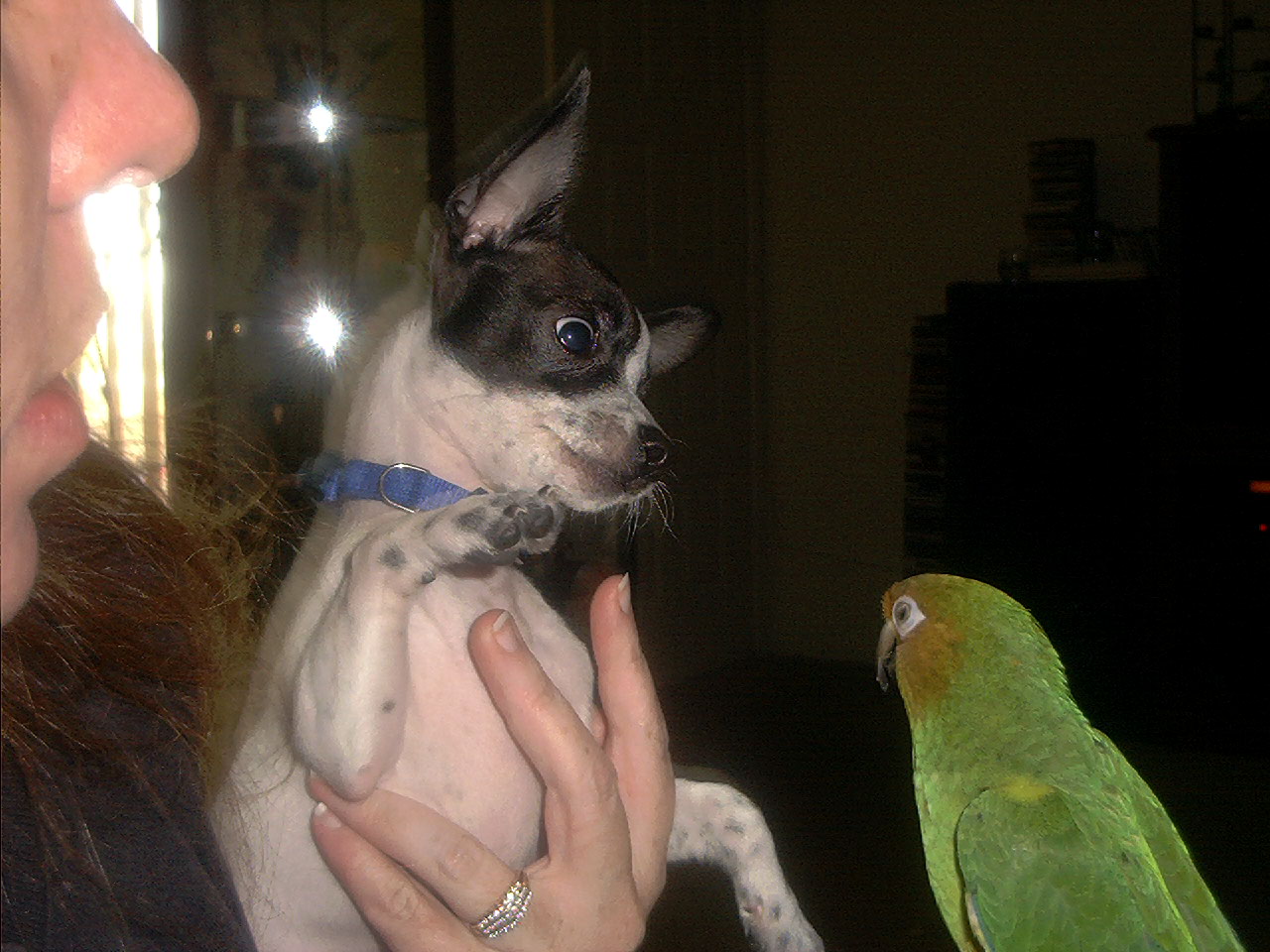 dog meets bird both annoying